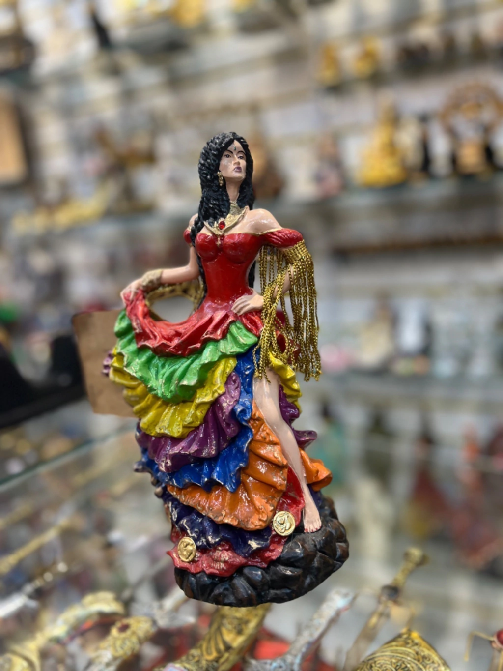 Material de Qualidade: Produzida em resina resistente, a Cigana Colorida é durável e mantém sua beleza ao longo do tempo, sendo uma adição encantadora à sua coleção.
