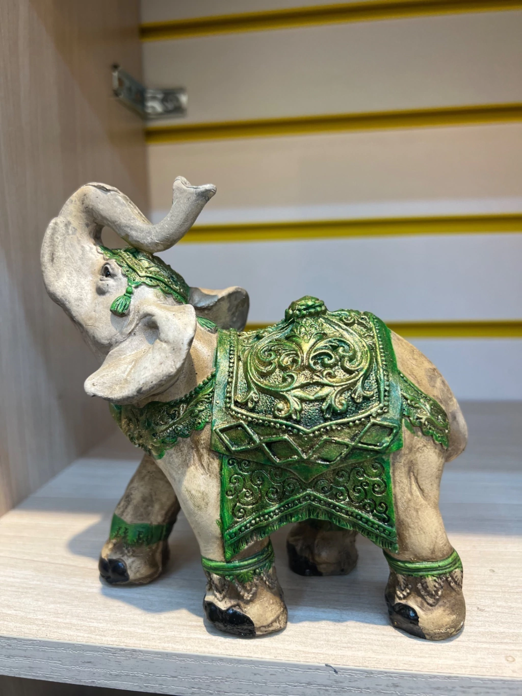 Adicione um toque de exotismo e elegância à sua decoração com nosso Elefante Decorativo de Resina na cor verde. Este encantador elefante é esculpido em resina de alta qualidade, destacando-se por seu acabamento detalhado e atraente coloração verde que evoca tranquilidade e harmonia. Perfeito para quem aprecia símbolos de boa sorte e força, este elefante é ideal para adornar estantes, mesas de centro ou qualquer espaço que deseje enriquecer com um elemento decorativo marcante.