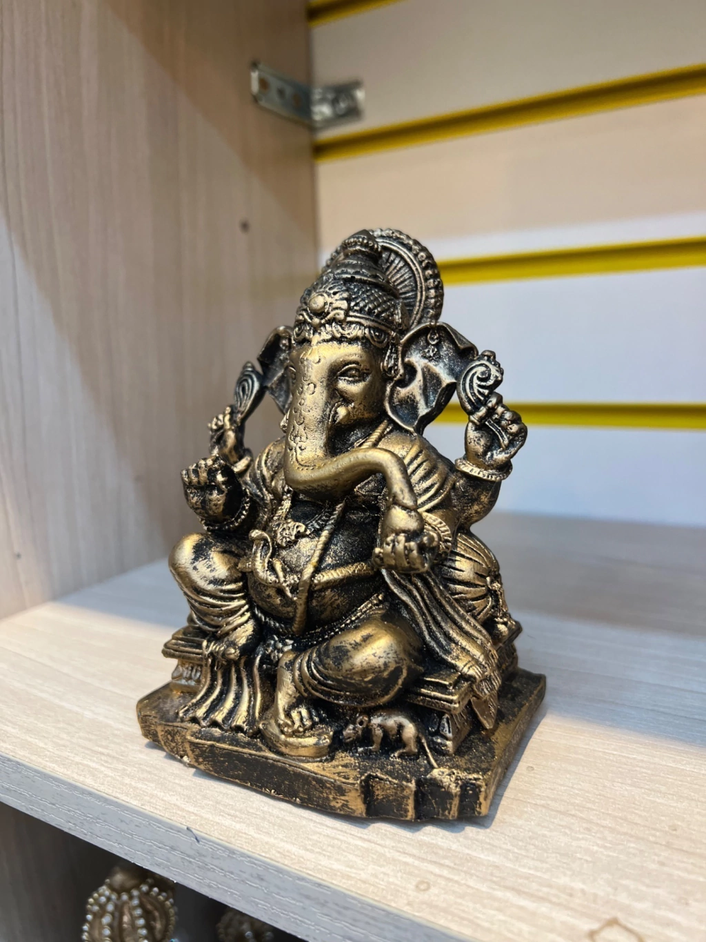 Esta bela peça captura a essência do deus hindu Ganesha, o removedor de obstáculos e senhor da sabedoria e prosperidade. Feita com resina de alta qualidade, a imagem é esculpida com detalhes delicados que realçam a tromba curvada, as orelhas largas e a postura graciosa de Ganesha. Ideal para decoração em casa, escritório ou espaço de meditação, esta imagem não apenas enriquece o ambiente esteticamente, mas também invoca a proteção e bênçãos de Ganesha em seu espaço.
