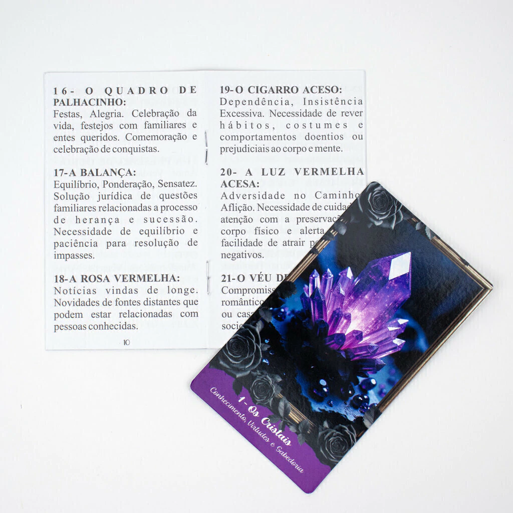 ? Manual Explicativo: Acompanha um manual completo que descreve o significado de cada carta, além de oferecer instruções para realizar as tiragens de forma eficaz, seja para iniciantes ou praticantes mais experientes.